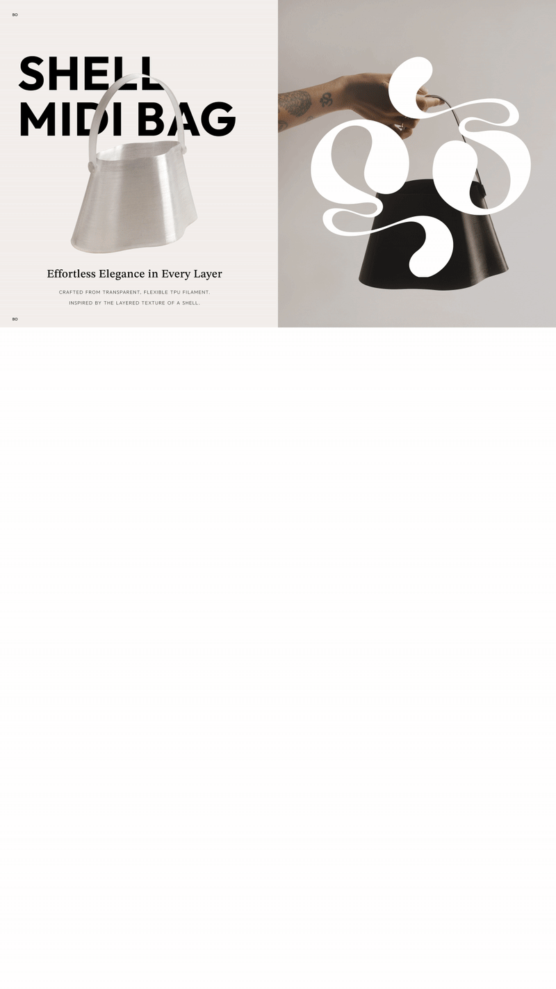 The logomark's concept is based on the liquid filaments used to create Bohobo's products. The letter B is stylised to evoke a flowing, liquid form, reflecting the fluidity of the materials. Inspired by calligraphy and movement, logomark plays the central role in brand's storytelling.