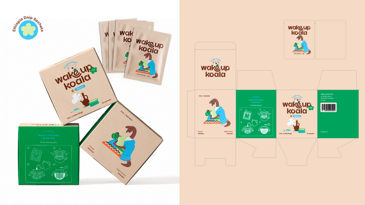 For Wake Up Koala - a coffee brand from Saudi Arabia - I designed a character-led branding system with 4 original mascots: Koala, Luwak, Ostrich and Kangaroo.